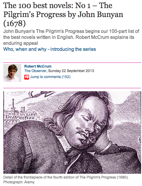 View the complete article on The Observer’s website: http://www.theguardian.com/books/2013/sep/23/100-best-novels-pilgrims-progress