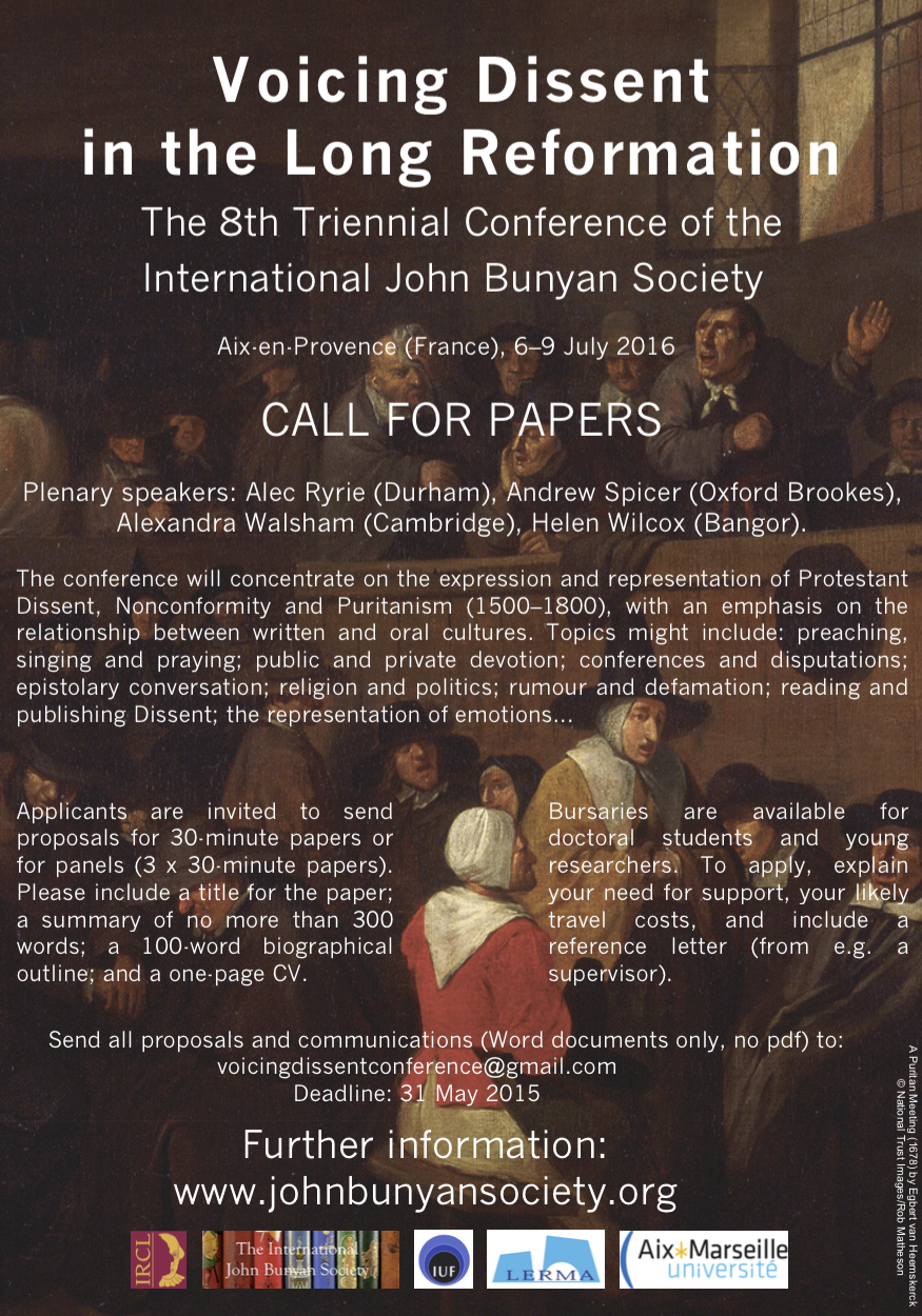 The conference will concentrate on the expression and representation of Protestant Dissent, Nonconformity and Puritanism (1500–1800), with an emphasis on the relationship between written and oral cultures. Topics might include: preaching, singing and praying; public and private devotion; conferences and disputations; epistolary conversation; religion and politics; rumour and defamation; reading and publishing Dissent; the representation of emotions…