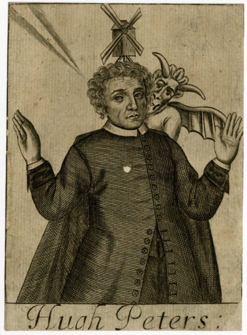 Scurrilous portrait of Hugh Peter from the broadside, Don Pedro de Quixot, or in English the right reverend Hugh Peters (London, 1660). Held at the National Portrait Gallery, London.