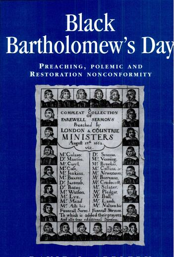 Winner: David J. Appleby, Black Bartholomew’s Day: Preaching, Polemic and Restoration Nonconformity (Manchester University Press, 2007).